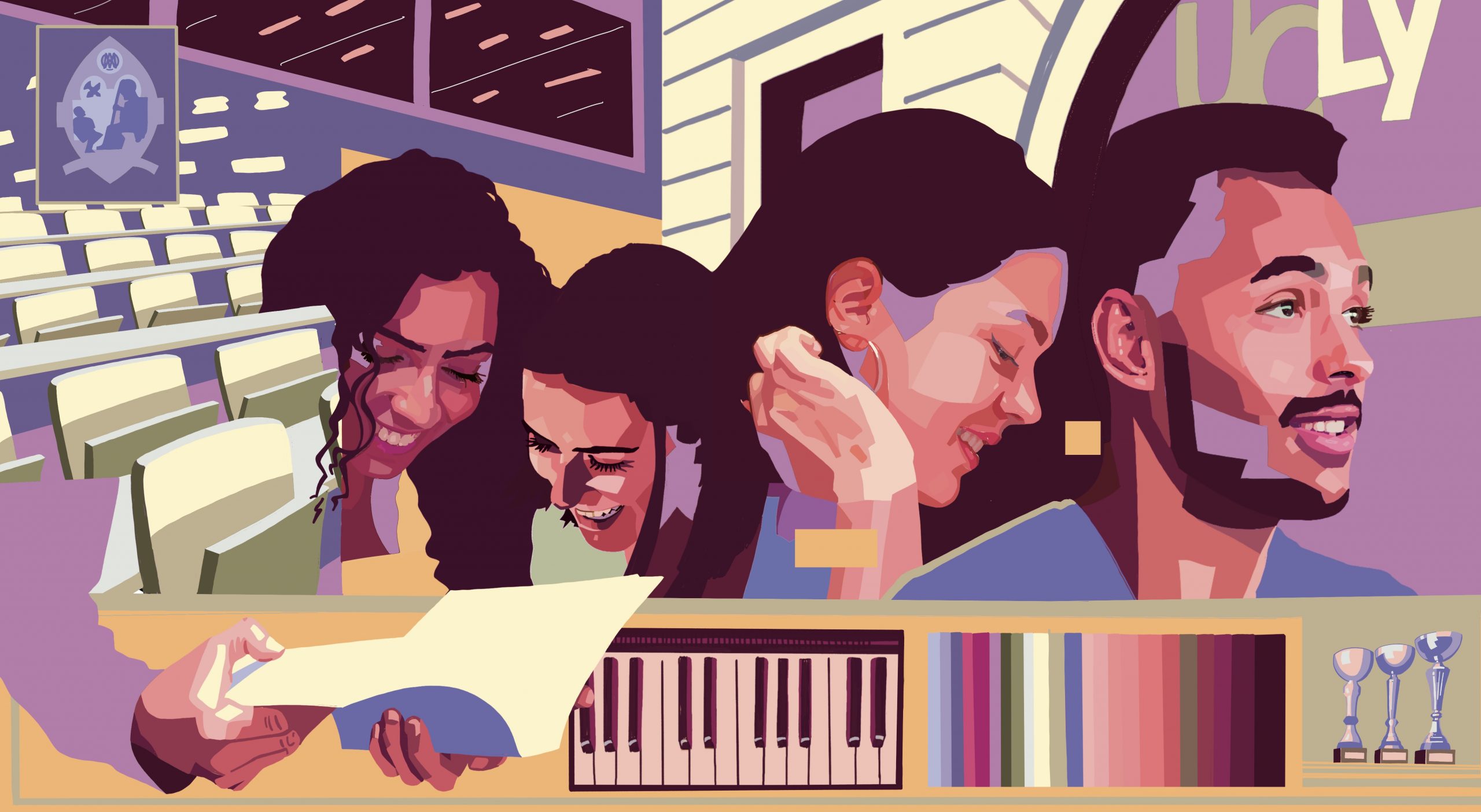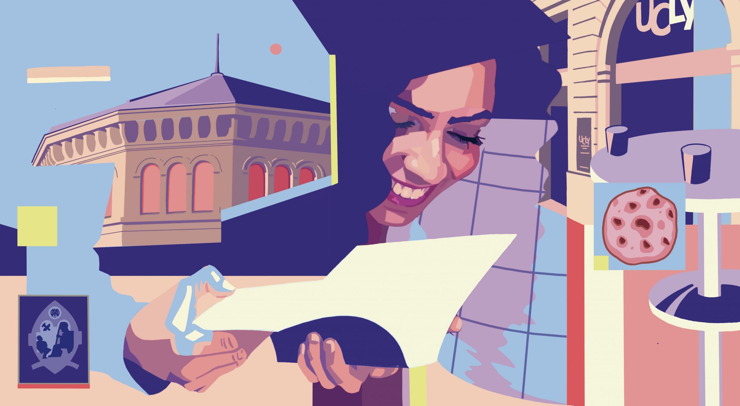 Enfin, la fresque rend hommage à son Histoire, à travers des éléments architecturaux emblématiques : la façade du campus Carnot (ancienne caserne militaire), la coupole du campus Saint-Paul (ancienne prison), qui témoignent de l’enracinement profond de l’UCLy dans le paysage lyonnais.