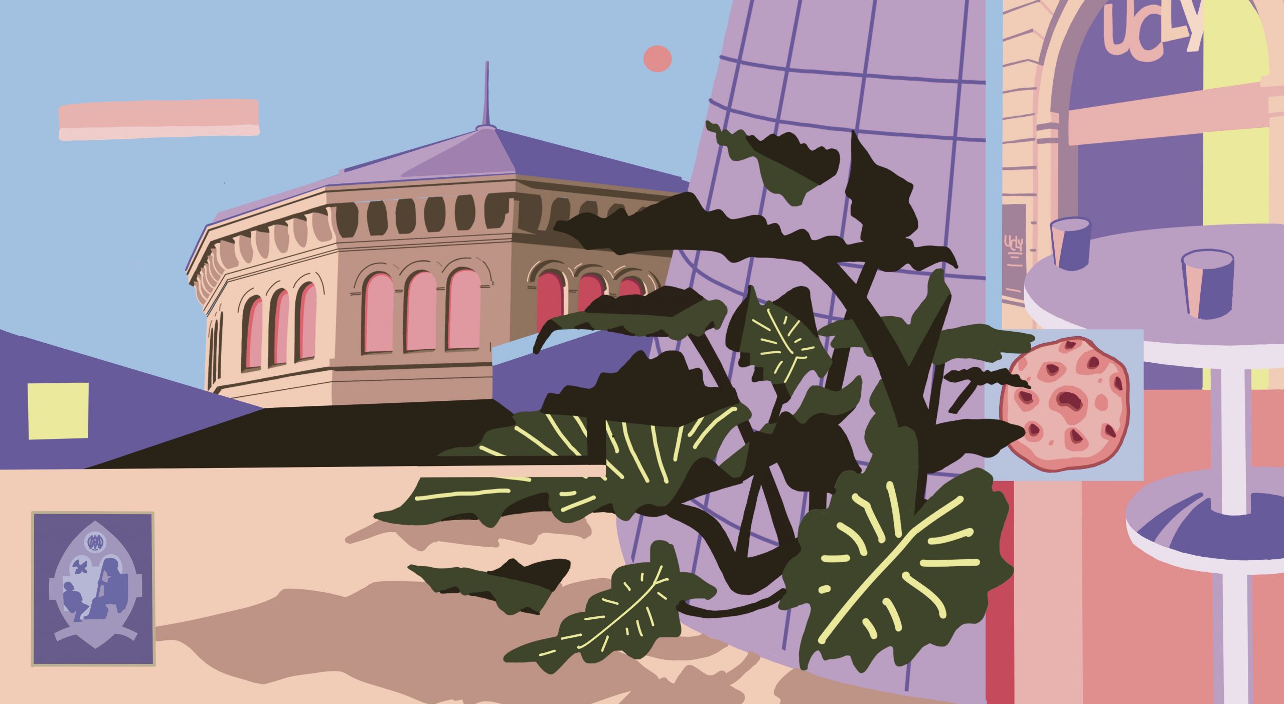 L’œuvre s’articule autour de trois grandes thématiques, l’UCLy comme lieu de savoir et de transmission, ouvert sur le monde, comme lieu d’Histoire, inscrit dans la ville de Lyon et sa région, et enfin, lieu de vie, de rencontres et d’échanges entre étudiants et enseignants. Ces thèmes sont traduits par un jeu subtil de décomposition des espaces et une structuration propre à l’artiste Quetzilla, dont les œuvres invitent à plusieurs niveaux de lecture.