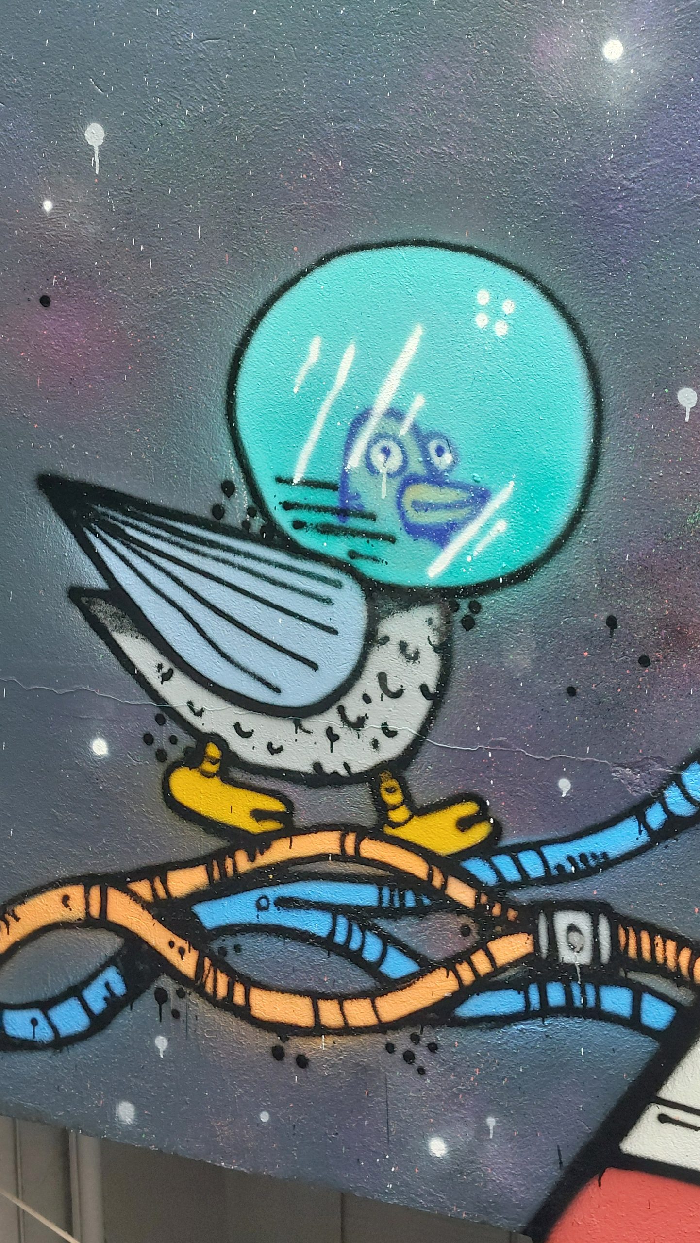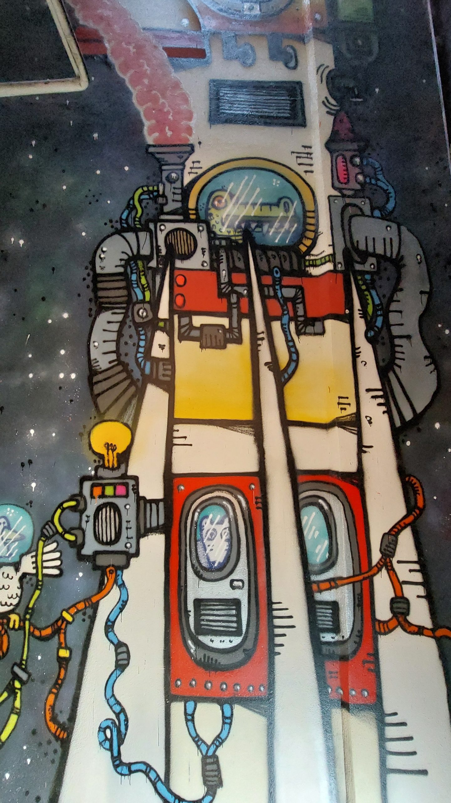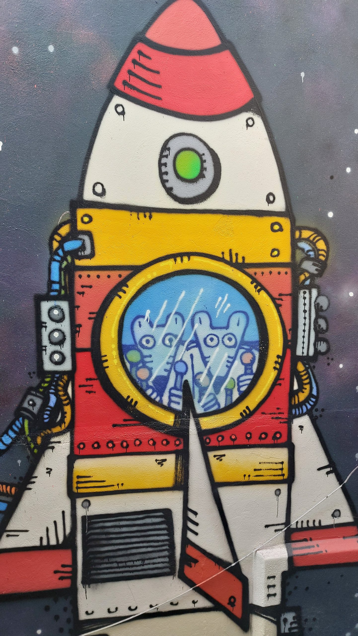 Sur les thématiques de l’évasion et du rêve, Poes a imaginé une fusée inédite. Prêt à embarquer depuis sa chambre, le client peut rêver prendre place aux côtés d’animaux pressés de tenter la « Grande évasion » : Oiseaux, chiens et chats, pigeons, chauve-souris ou cochons (suivis par le loup-garou!)…Fidèle à son univers, l’artiste questionne ici subtilement l’avenir de la planète via de mignonnes créatures qui forment notre société en miroir. Accord parfait avec l’équipe accueillante de l’hôtel et leur positionnement éco-responsable.