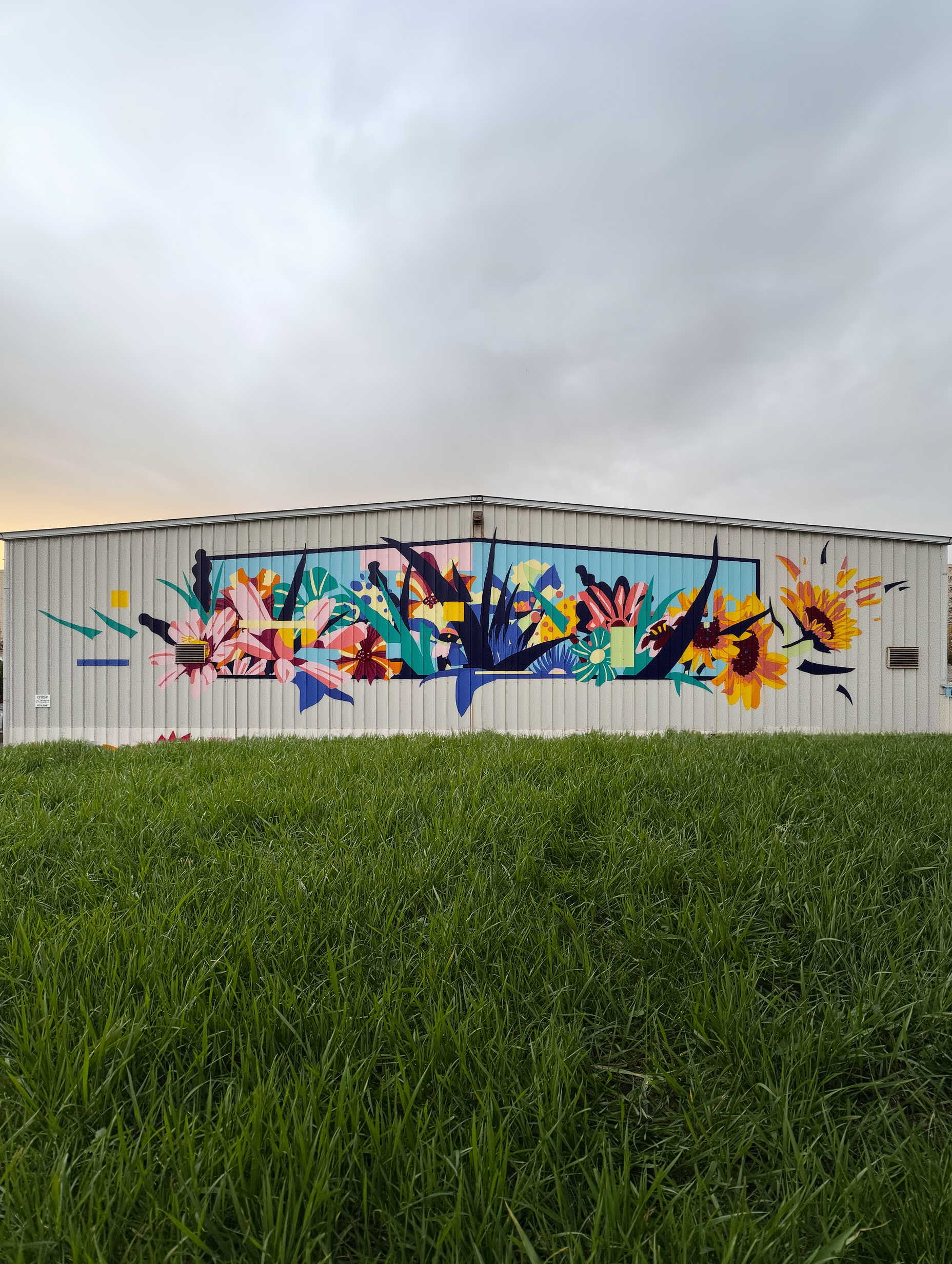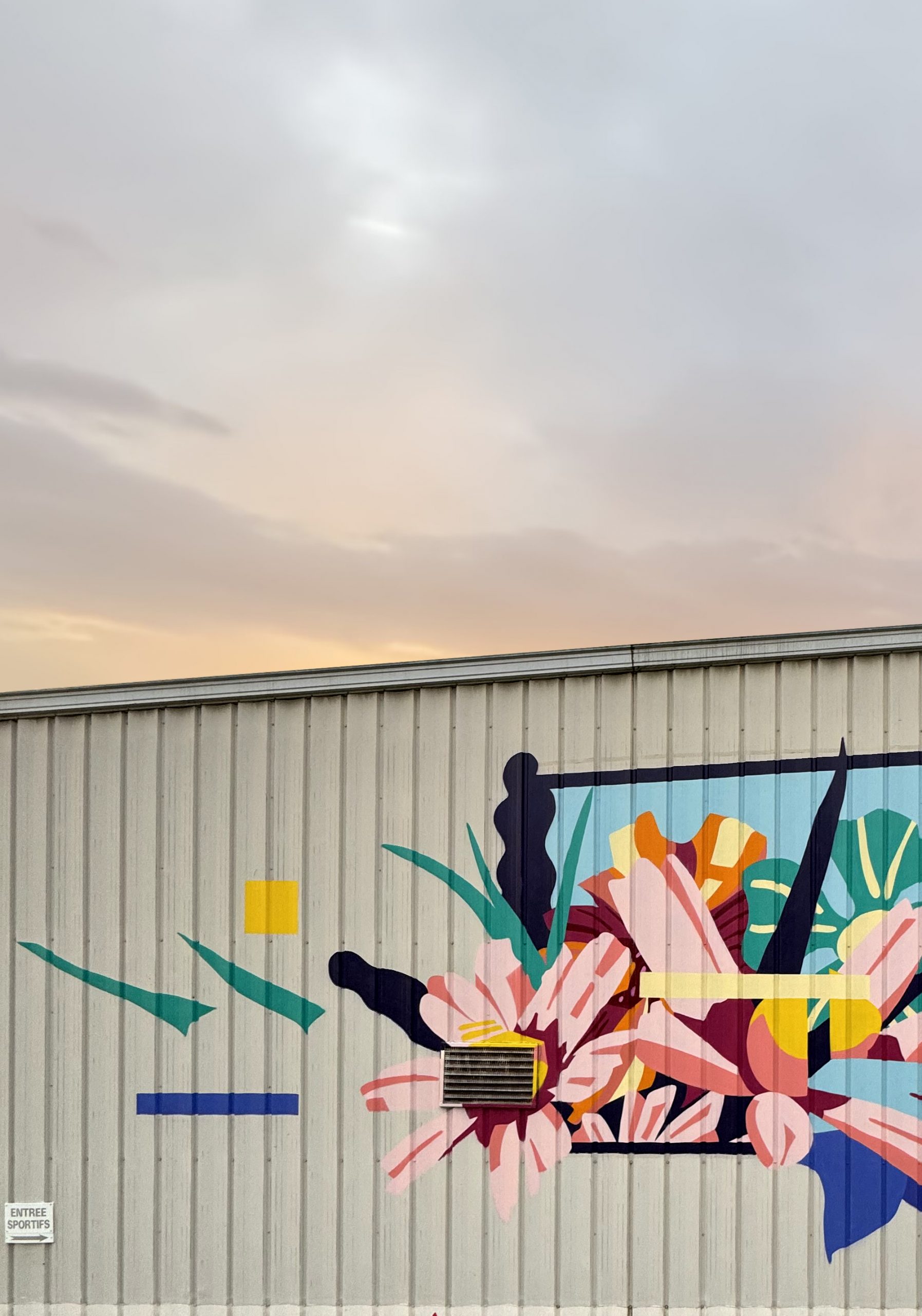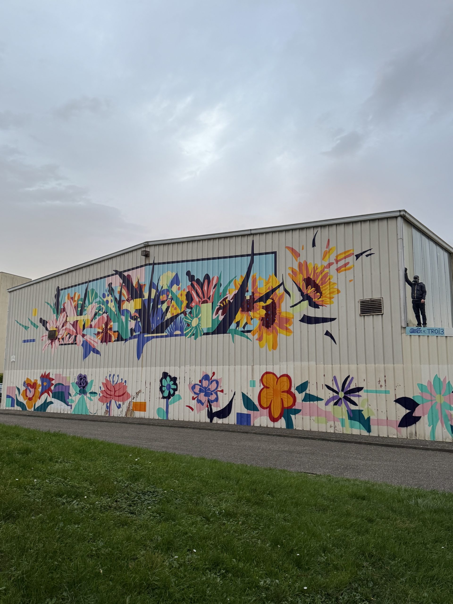 Sous l’impulsion de la Ville de Décines-Charpieu, Quetzilla a proposé une fresque florale de 45m2.